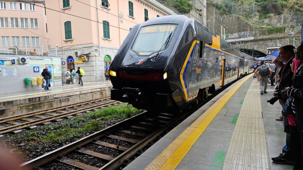 Cinque Terre Express coming in to the station. We were expecting an old, classic train vs. the high speed Italian trains.