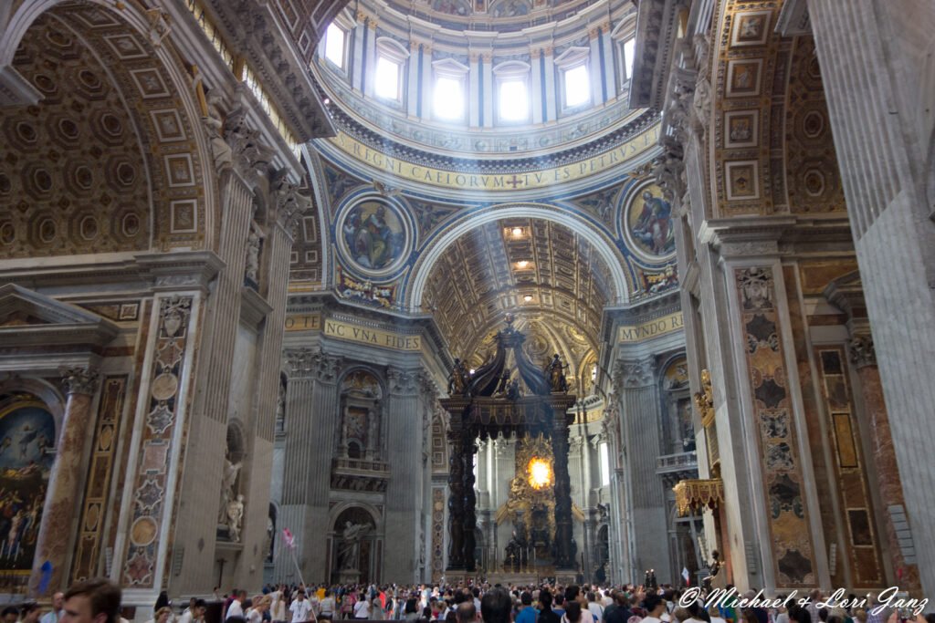 Inside of St Peter’s Basilica. Saint Peter and over 90 popes are buried in St Peter’s
