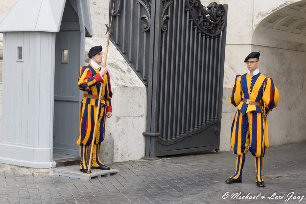 The Swiss Guard are the Pope’s personal bodyguard. The 135 members have taken an oath to lay down their lives for the Pope.